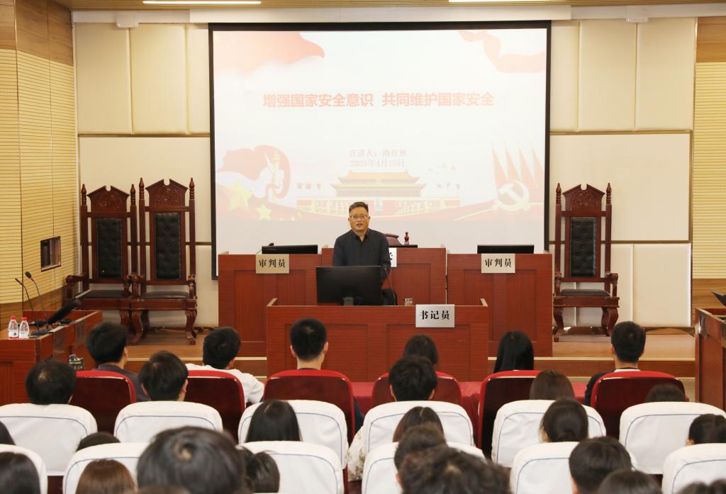 4月15日,法学与社会学学院党委书记尚红林在社科楼413以《增强国家安全意识共同维护国家安全》为主题,为大学生们作了一场“国家安全教育日”法治宣讲。100余名学生聆听了报告。
