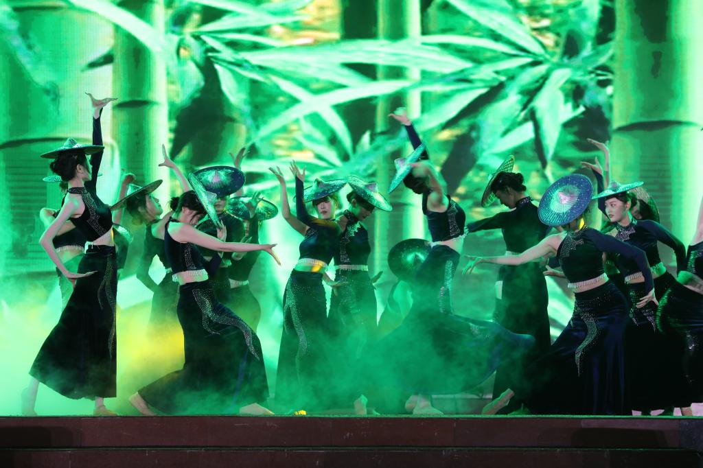 晚会开始前,校领导为第二届“校园明星”获得者颁奖。随后,俄罗斯图拉国立师范大学来华留学生和我校停云实训合唱团学子的歌声拉开了晚会帷幕。理工学院学子带来的舞蹈《九州同》,展现出底蕴深厚的中华文化和生生不息的民族精神,激励着当代青年锐意进取、开拓传承。歌曲《思念》《心中的谭山》和朗诵《薪传》共同表达出学子们对母校辉煌成就的崇敬和对老师们的无限眷恋之情。《西部放歌》《青春梦想 在此启航》号召广大青年放飞梦想,前往西部基层去建功立业,在党和人民最需要的地方绽放青春之花,也将晚会推向了高潮。舞蹈《陶醉了》《石榴花开映同心》《大地》以动人舞姿为墨,绘出民族团结同心圆的美丽愿景。来自刚果(布)的留学生宝岩石等同学联袂高歌,生动演绎各国青年在交流中增进彼此了解的和谐乐章。“厚德崇实砥砺品格高尚,善学敏行追求真理之光”,歌曲《托起民族的希望》饱含深情,诉说师大故事,歌颂师大辉煌,寄托美好祝福,突显巍巍师大,弘毅笃行,勇于托起民族希望的决心与担当,赢得全场喝彩。最后,晚会在歌声余韵中落下帷募。