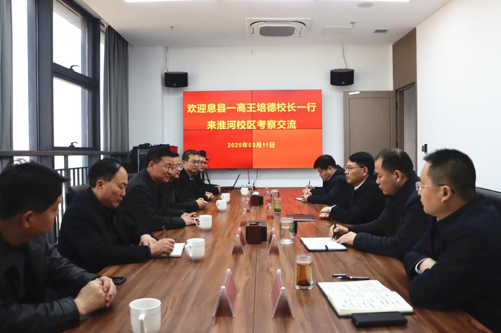 3 月 11 日,息县第一高级中学王培德校长率队到淮河校区考察交流。淮河校区党工委副书记、管委会常务副主任谢蕾等同志会见客人。