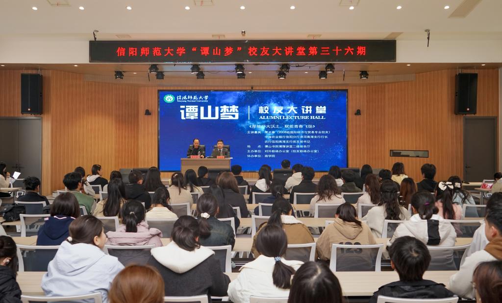 3月11日,商学院于博雅讲堂举办校友经验分享会。该院国际经济与贸易专业校友、中国农业银行信阳分行南湾支行党支部书记、行长栗长春,以《厚植师大沃土,赋能青春飞扬》为主题,向200余名师生分享求学感悟。该院副院长梁静波参加,对外联络办公室主任耿劲松主持。