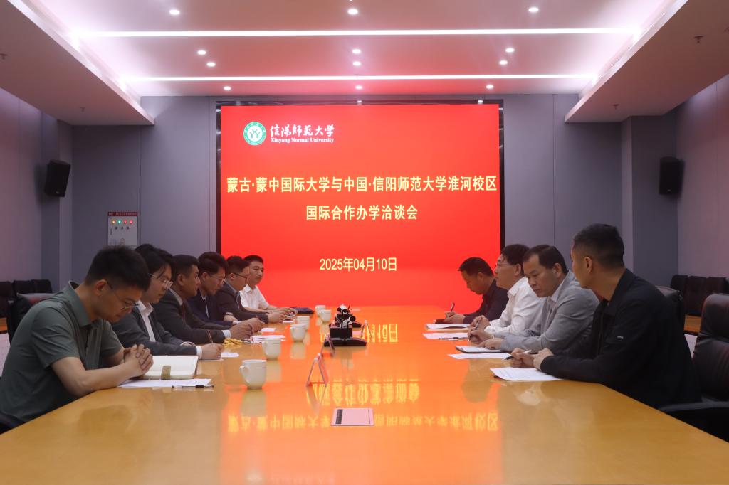 4月10日,蒙古国蒙中国际大学校长额•恩和太平教授、招生办主任包•额尔敦博士等一行到淮河校区考察交流,淮河校区党工委副书记、管委会常务副主任谢蕾等接待来访客人。