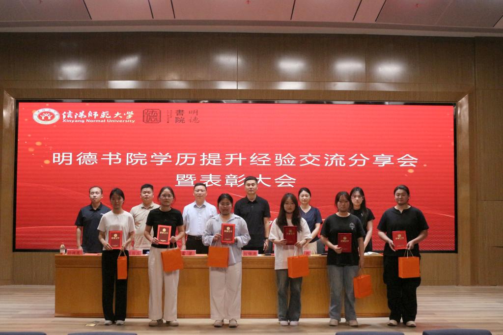 信阳师大新闻网讯 5月27日,明德书院在淮河校区图书馆报告厅举行学历提升经验交流分享会暨表彰大会。该院直属党支部书记雷梁,软件学院合作企业教学副院长顾兴兵,辅导员代表及2024级全体学生参会。会议由淮河校区管委会副主任、明德书院副院长刘锦涛主持。