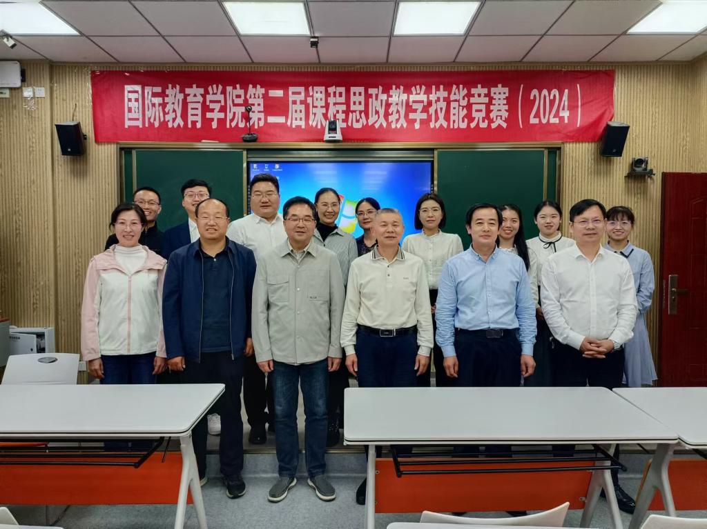 为深入推进与创新课程思政建设,以赛促教、以赛促学、以赛促建、以赛促改,10月18日下午,国际教育学院在逸夫楼201举行课程思政教学技能竞赛。学院领导班子成员和教学督导专家担任评委。学院全体教师和部分学生观摩听课。